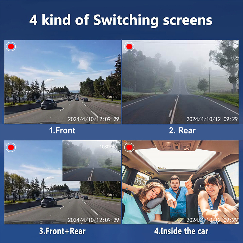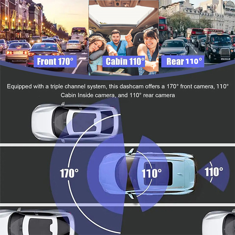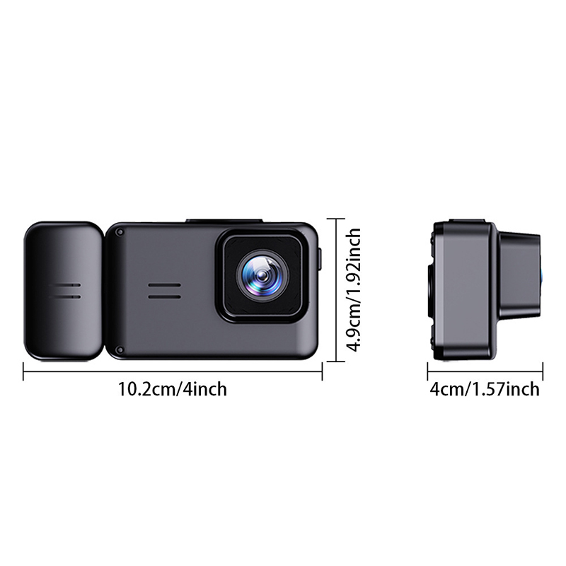 Master Control: JR3292 Lens: GC1084 Screen Size: 2 inch IPS Resolution (Front): 1920 * 1080P Resolution (Interior): 640 * 480P Resolution (Rear): 640 * 480P Working Current/Voltage: 5V/1A Working Temperature: -20°C – +75°C Working Humidity: 15%-60% RH Video Format: AVI/MOV/MP4 TF Card Support: Max 8-128GB Battery Capacity: 150mA WIFI/APP: Optional Color: Black